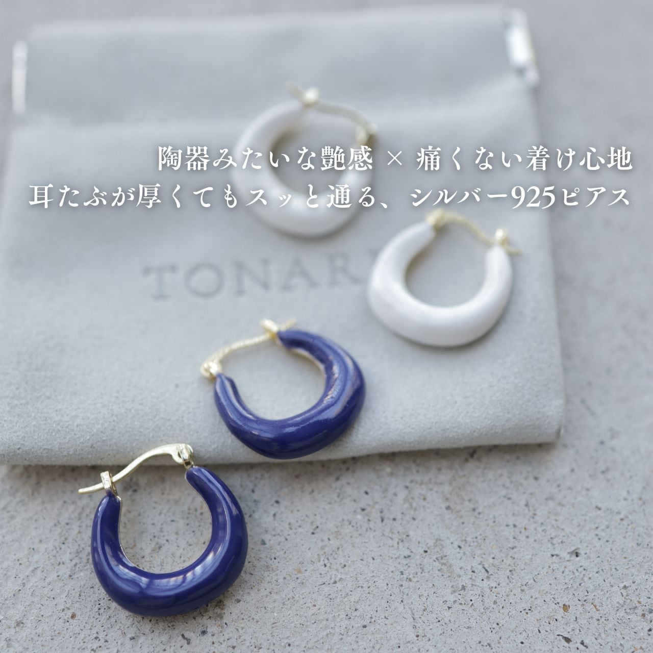\耳元で“艶めき”を楽しむ、陶器風フープピアス/