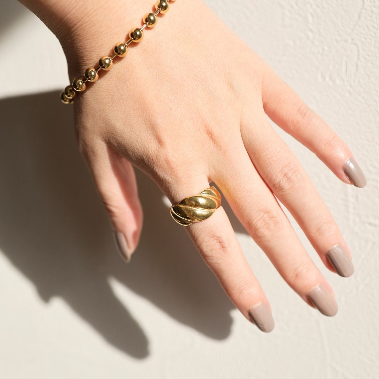 太めリングと合わせれば、抜け感のあるモードな雰囲気に。