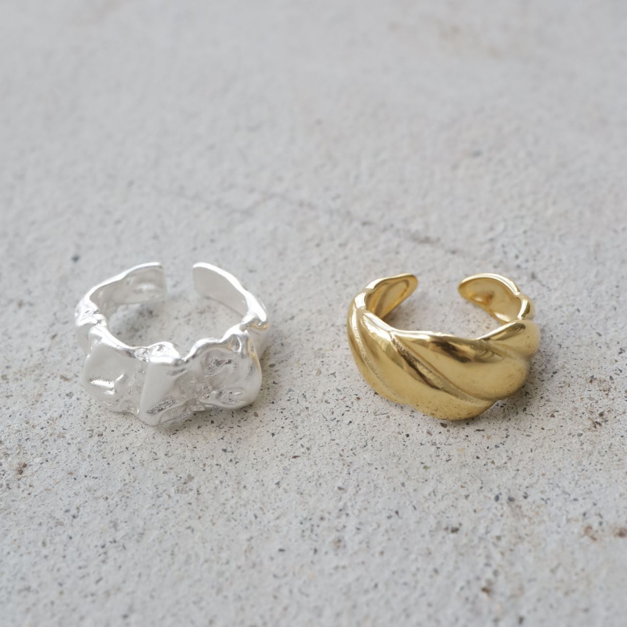 画像で一緒に並べているシルバーのクラッシュリングも販売中です。