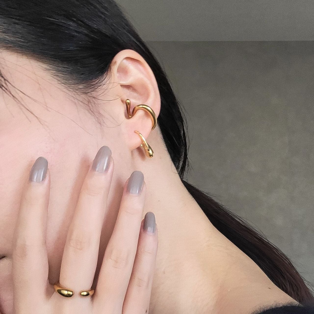 ✔ 耳のラインを美しく見せるカーブデザイン 耳たぶの自然なカーブに沿うように計算されたフォルム。従来のストレートなピアスとは一味違う、立体的で洗練された印象を演出します。横顔をすっきりと美しく見せる効果も◎