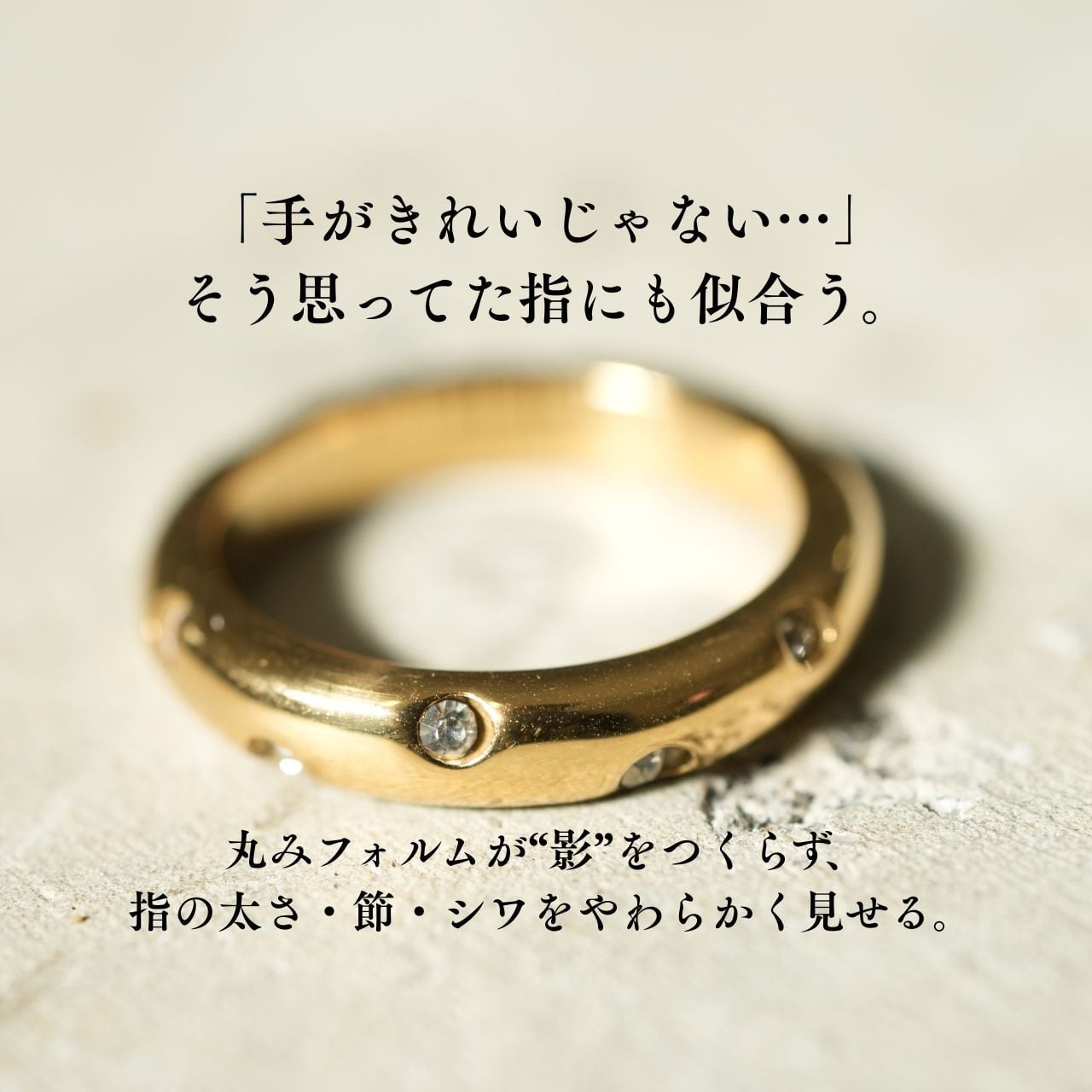 光りすぎない上品ゴールド × 小粒ストーンの絶妙バランス