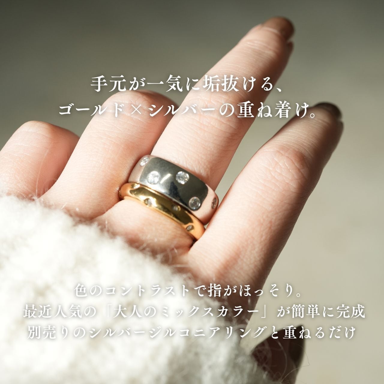 重ね着けにオススメのシルバージルコニアフリーサイズリングはこちら