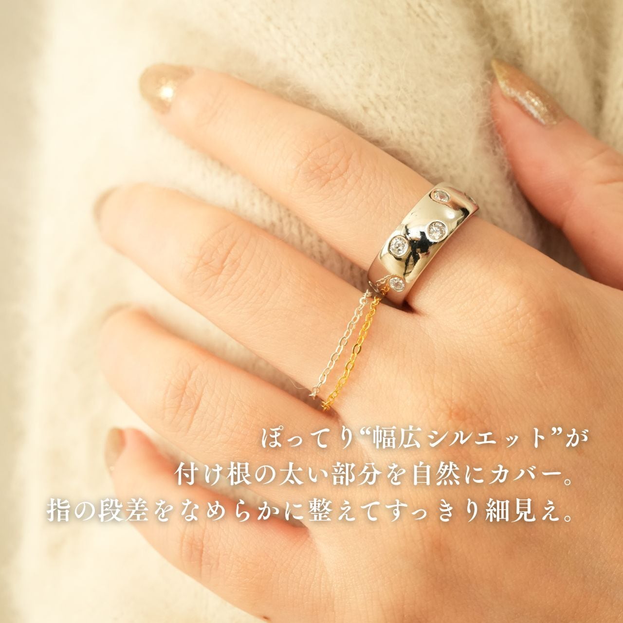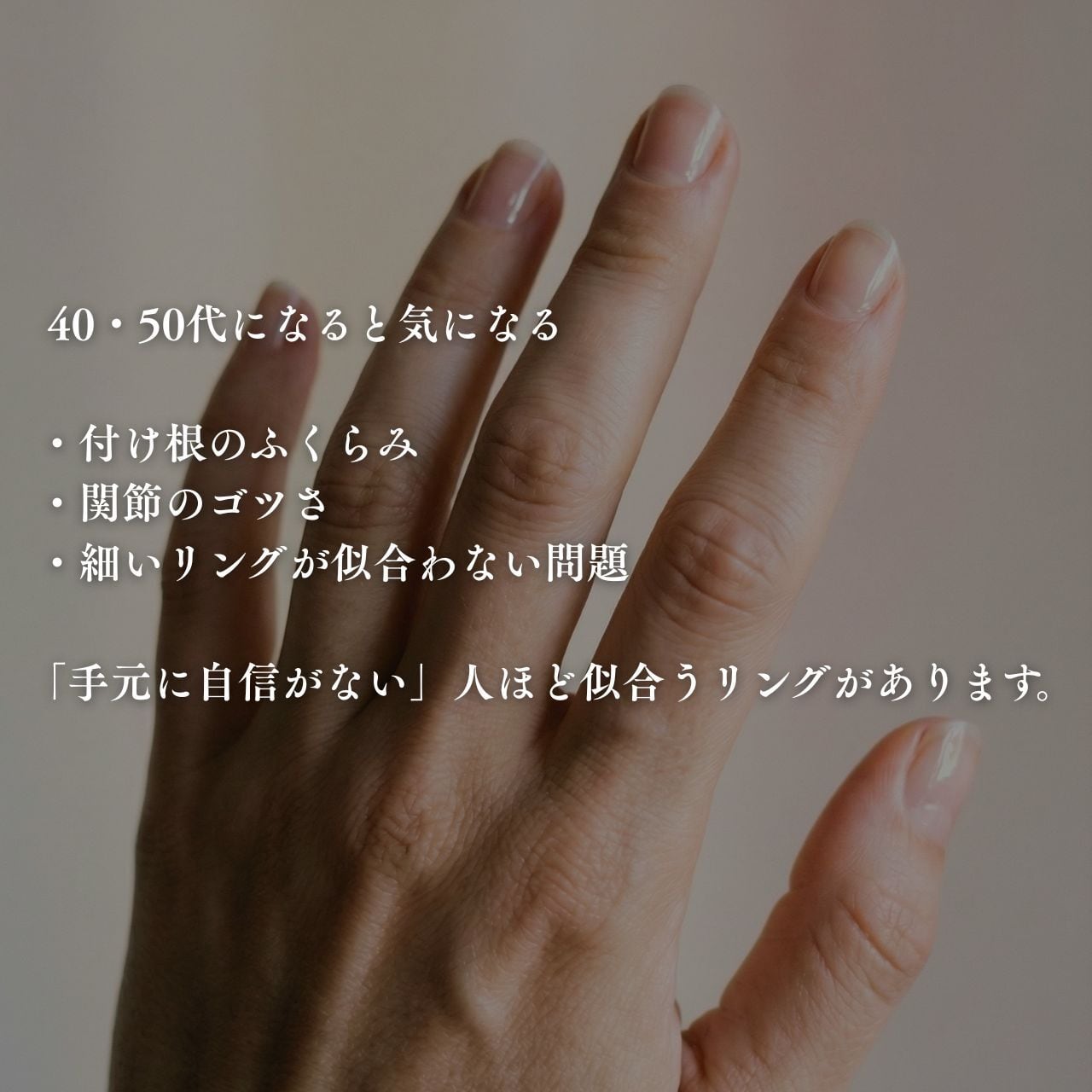 華奢リングよりも指のラインが美しく整って見えるのがポイント。