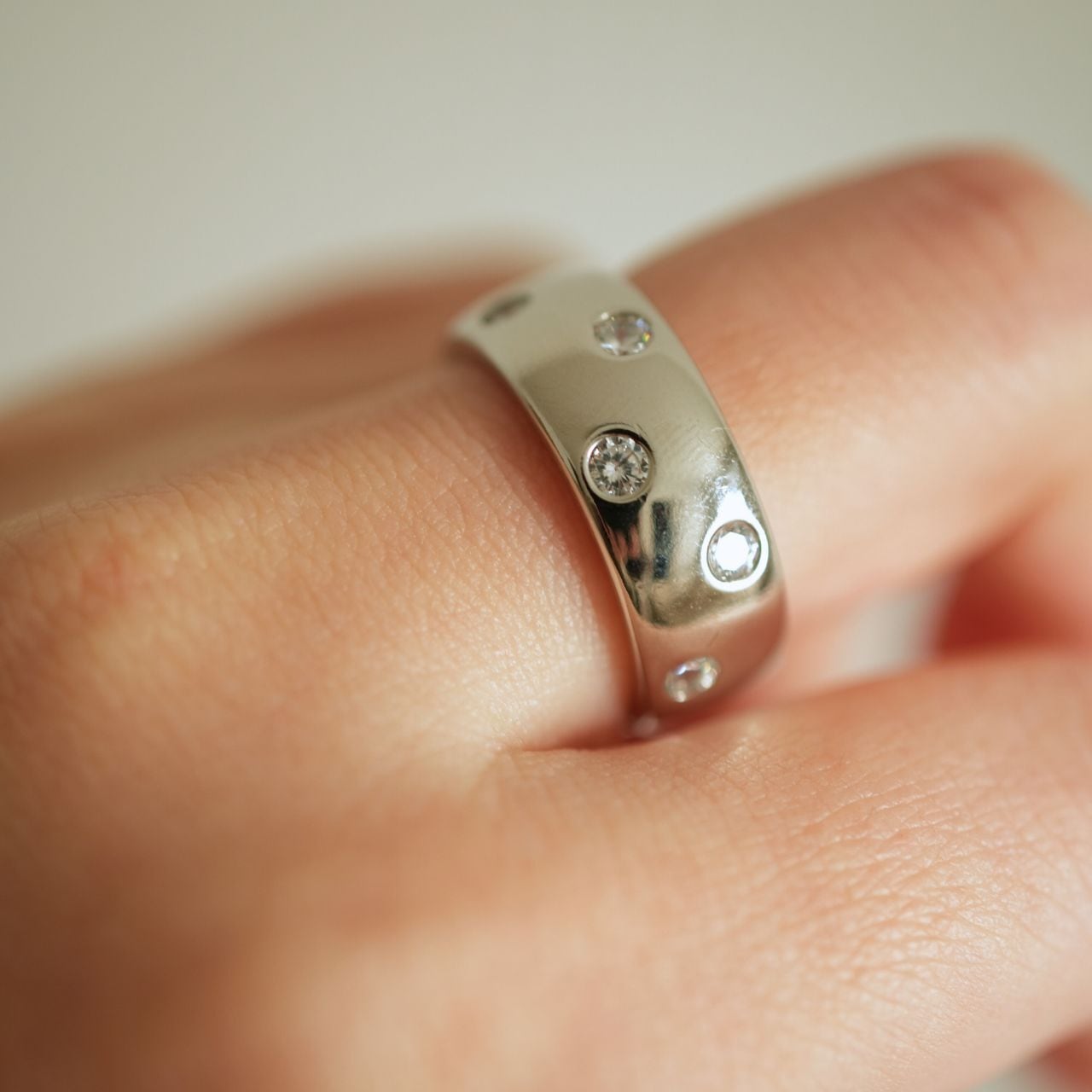 控えめなサイズ感のジルコニアをランダムに散りばめることで、