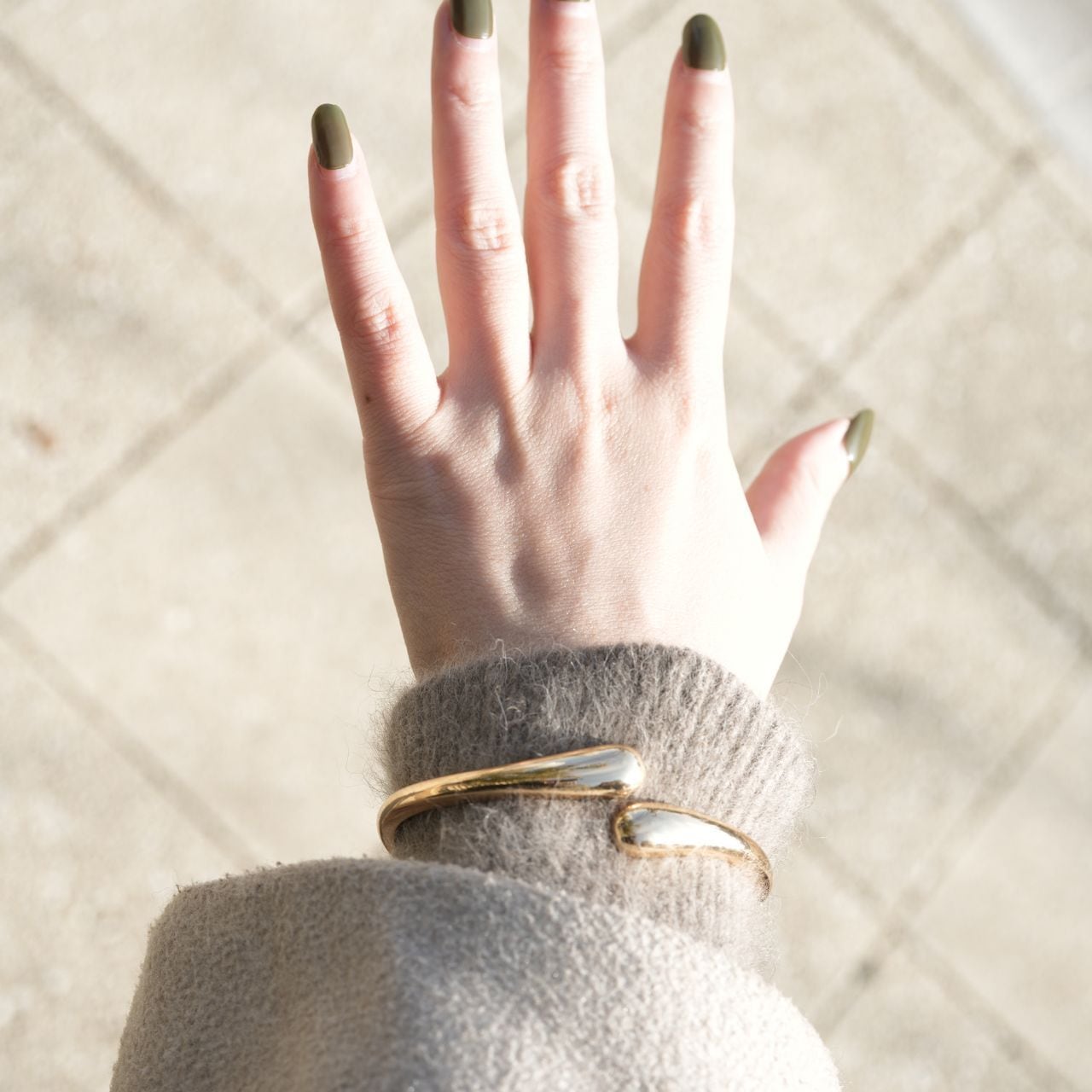 「バングルって、つける時に手が痛いし、サイズが不安…」