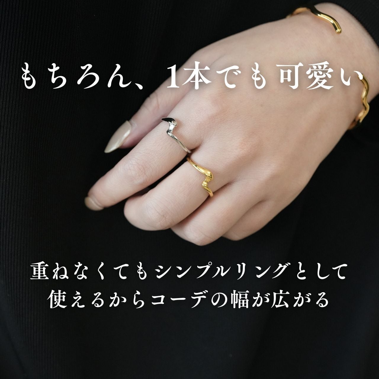 ✔ 別の指につけて抜け感に